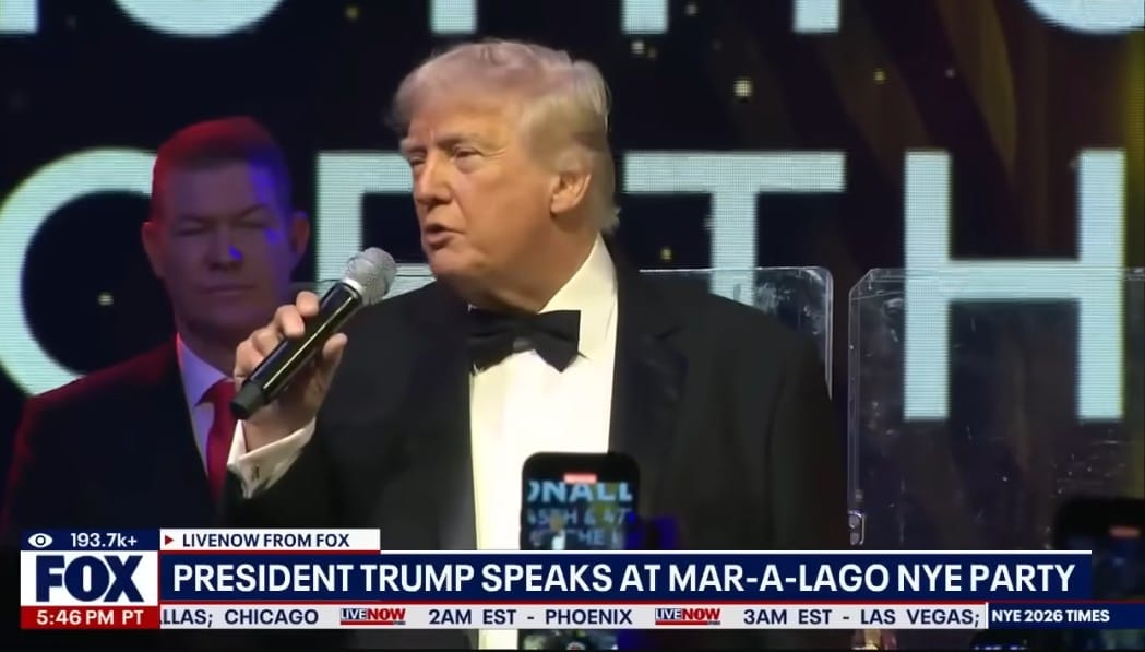 President Donald Trump turned a New Year party at Mar a Lago into a political moment on Wednesday night, pressing an old complaint about social services fraud in Minnesota and drawing his guests into the row. His short remarks moved quickly from praise for allies to strong charges about fraud at Somali run child care centers.